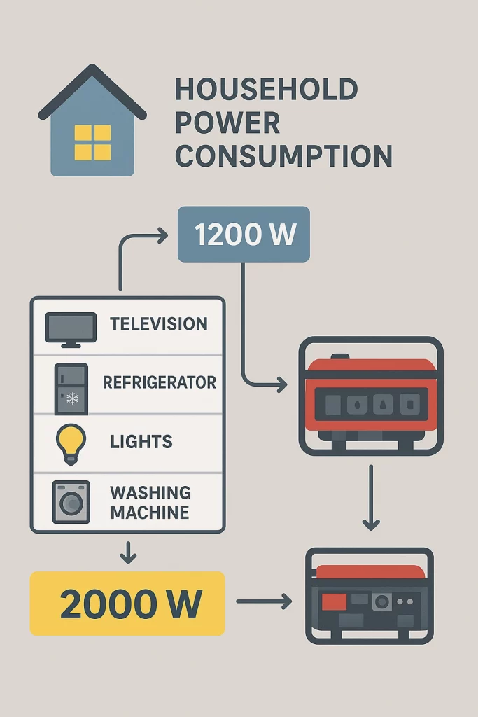 | مصرف خانگی + پمپ آب | بنزینی ۳–۵ کیلووات |